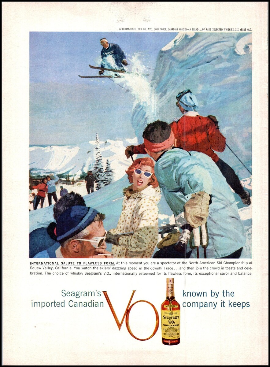 1950s Seagram's V.O. Canadian Whiskey PRINT AD Squaw Valley Ski Championship BX4