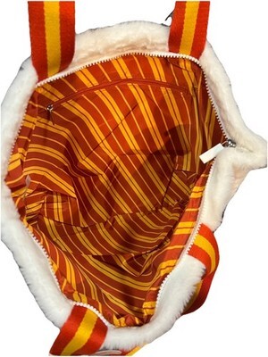 The miniso Harry Potter Gryffindor plush zipper bag is a collectible item inspired by the fantasy world of Harry Potter. Made with fluffy white plush material, this double handle tote bag features a striped interior and the iconic Gryffindor colors of white, yellow, and red. With dimensions of 12" H, 17" W, and 6" D, this zipper bag is perfect for carrying around your magical essentials in style.