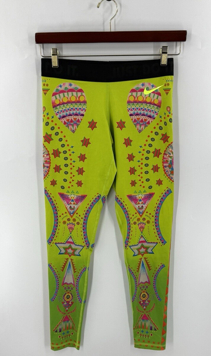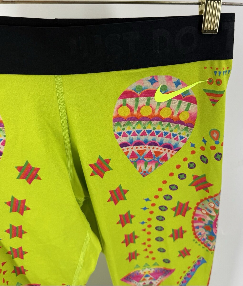 Nike x Yuko Kanatani Leggings Sz M Lime Green Orange Bright Sparkling Sunburst