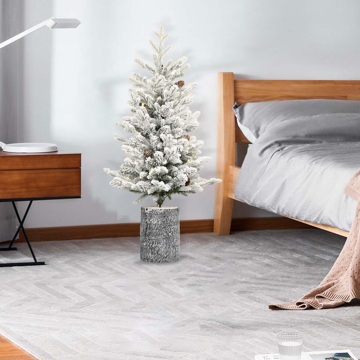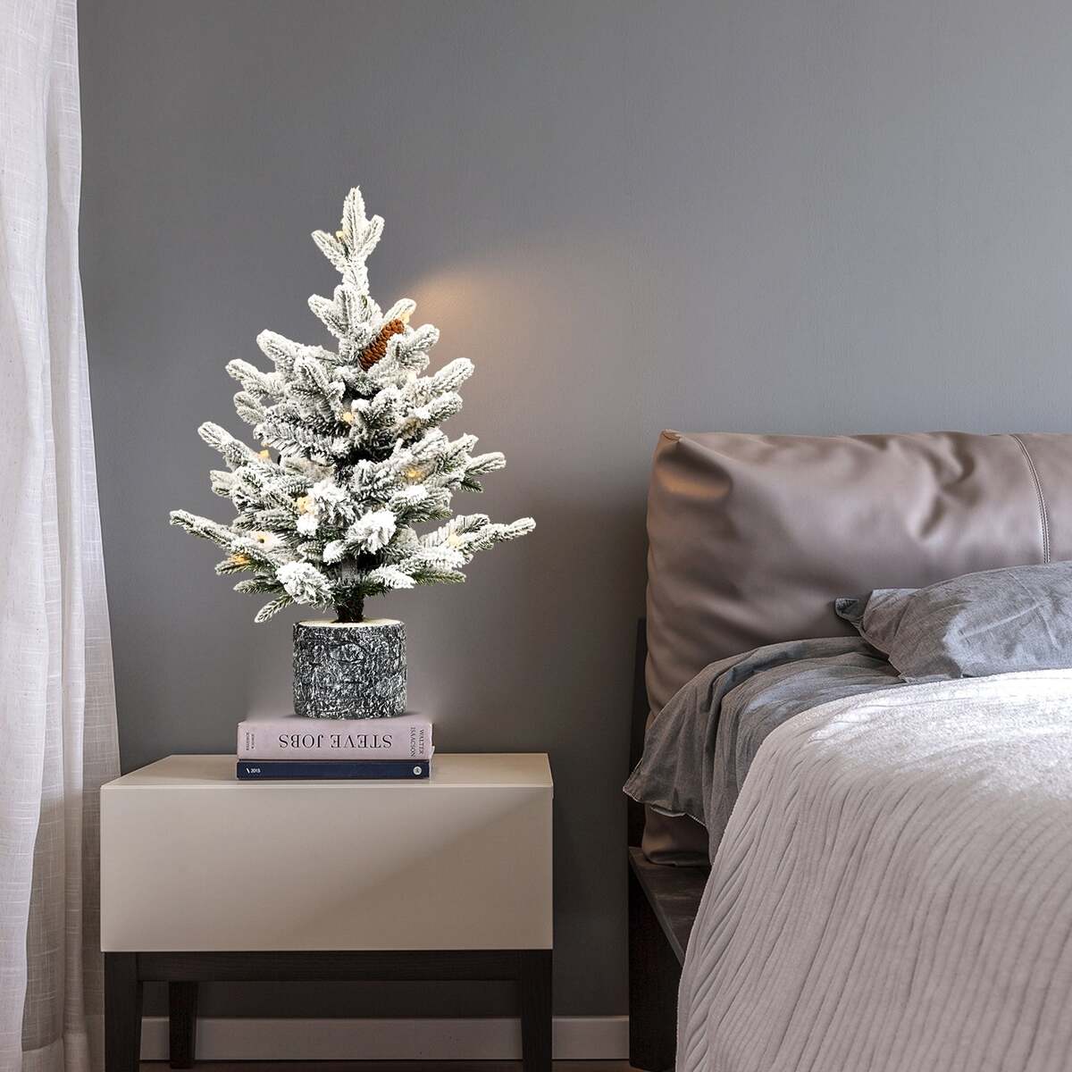 2FT Flocked Prelit LED Christmas Tree Tabletop Decor Pine Cones