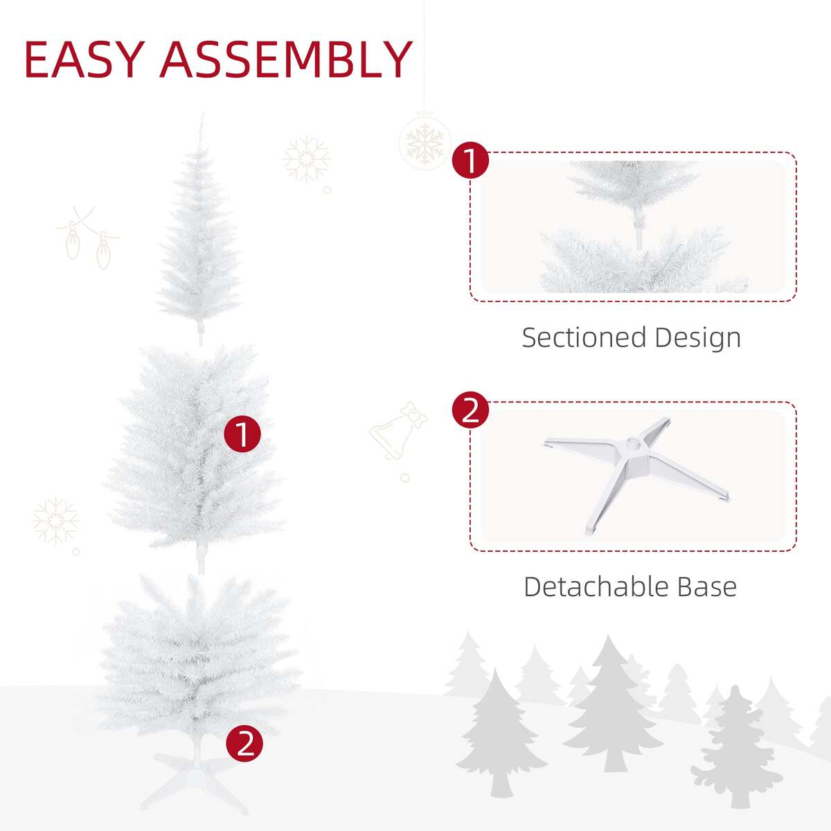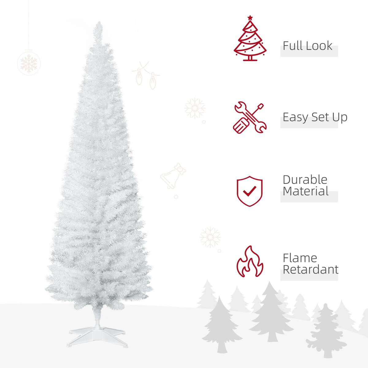 HOMCOM 6ft White Slim Pencil Artificial Christmas Tree with Stand
