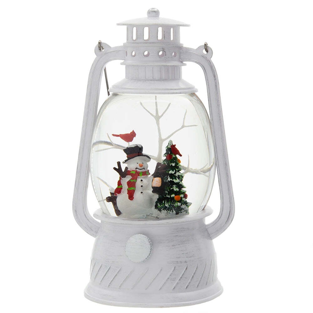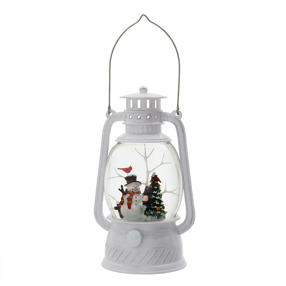 White Christmas Snowman LED Water Spinning Lantern with 6H Timer