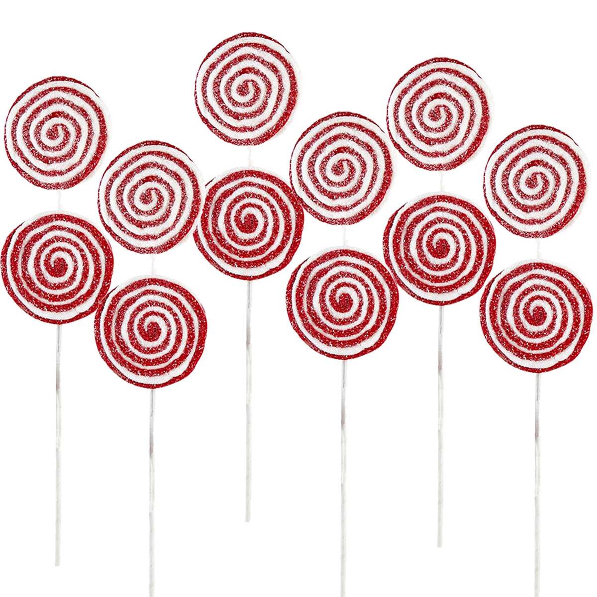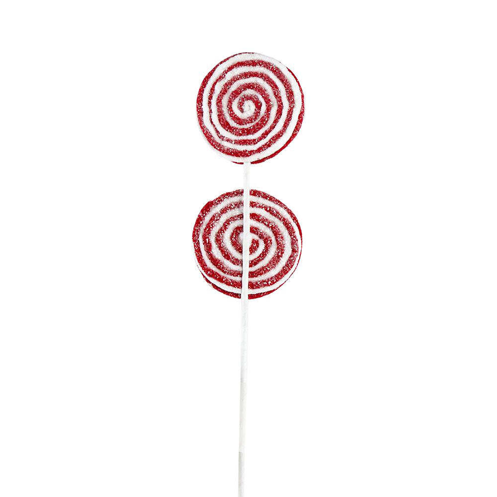 Reminiscent of classic children?s candy, each pick features a large lollipop design, complete with a vibrant red and white swirling pattern.