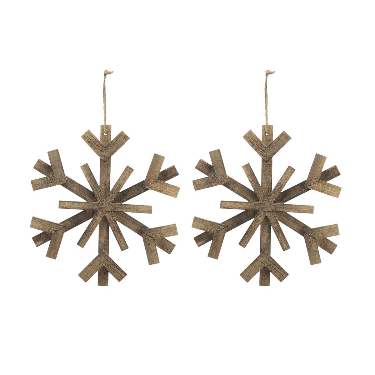 17.7" Large Fir Wood Snowflake Ornaments Christmas Decor Set 2
