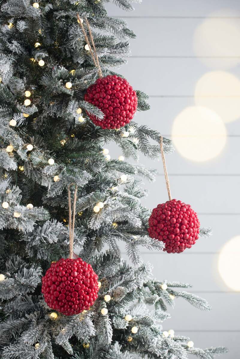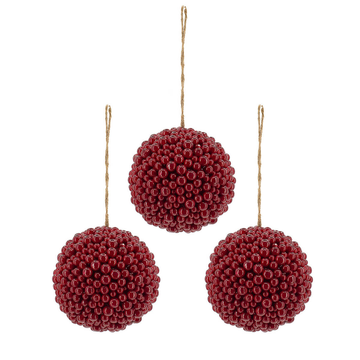 Red Berry Ball Ornaments Set 3 - Christmas Holiday Decor 6.5"