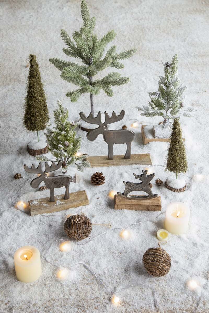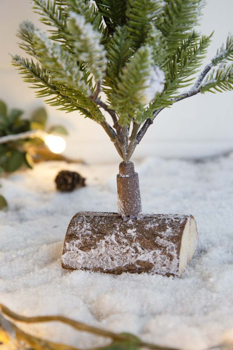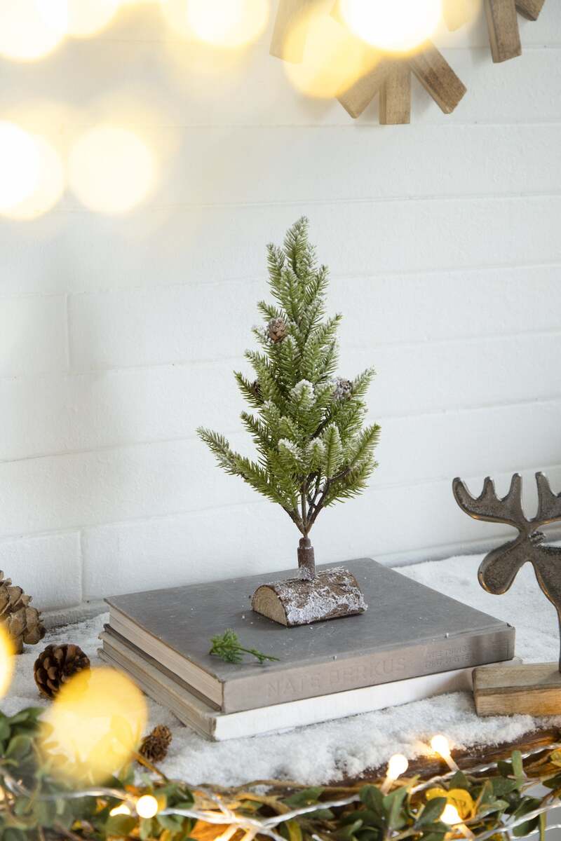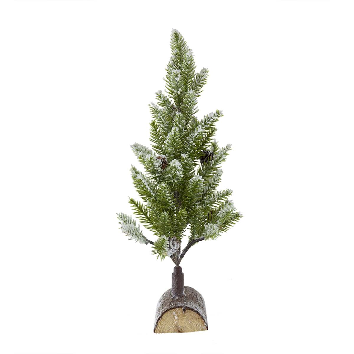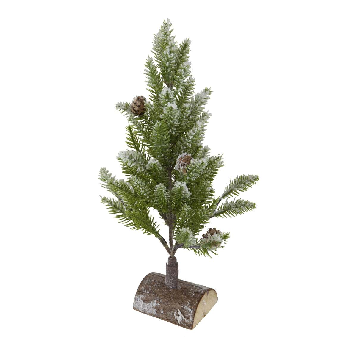 A holiday centerpiece for the ages! This delightful artificial Christmas tree is presented with realistic snow and frocking and displayed on a wood base for a complete look. A small accent that draws the eye, it?s styled after a traditional holiday pine. Add this accent to foyers, living rooms, dining areas, and more for a festive and fun finish.