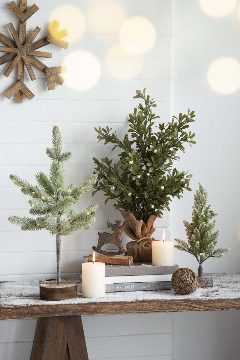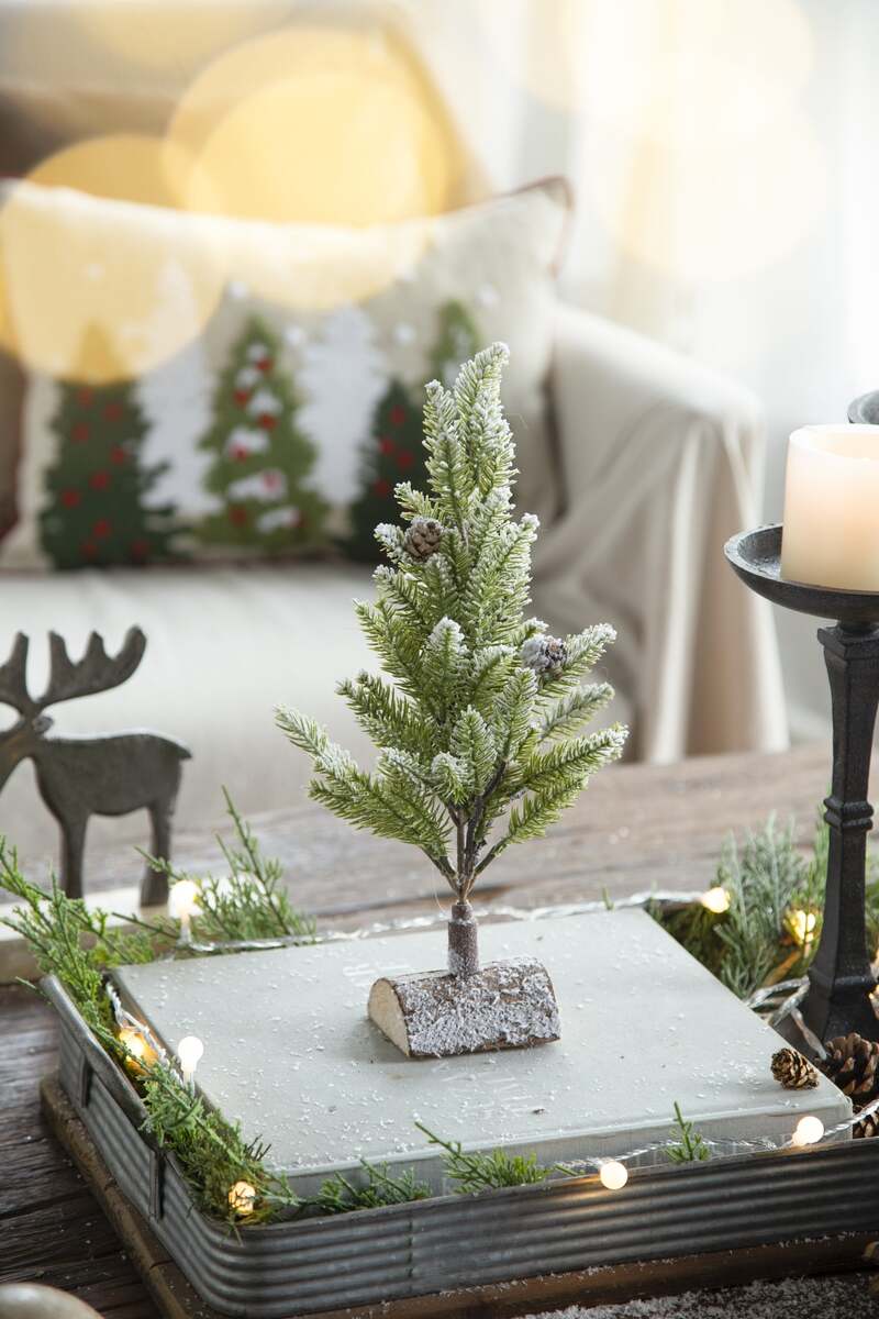 A small accent that draws the eye, it?s styled after a traditional holiday pine.