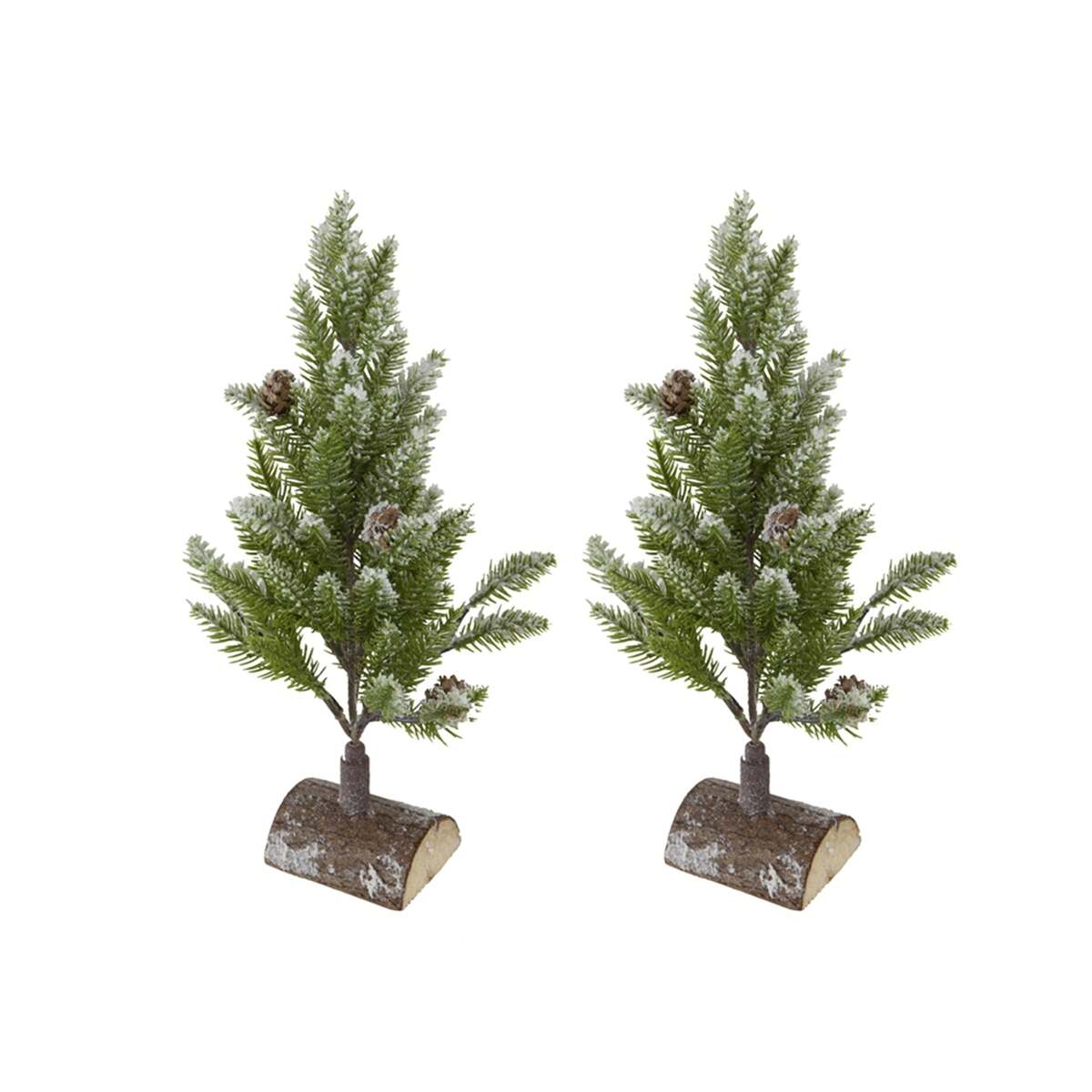 Set of 2, 13.5' Christmas PVC Tree On Wood Base With Snow