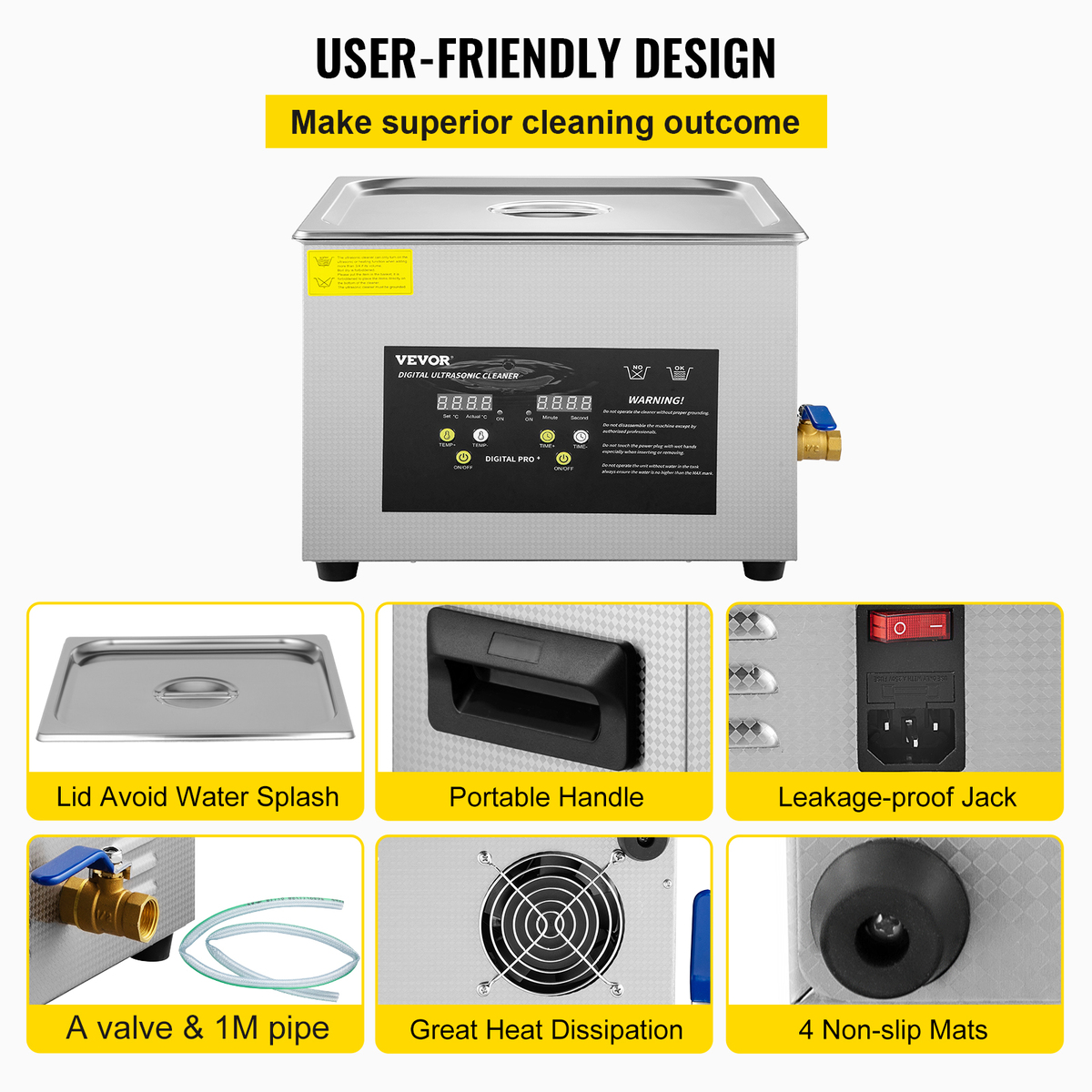 VEVOR Ultrasonic Cleaner with Heater & Timer, 15 L, 600W Heater, 360W Ultrasonic