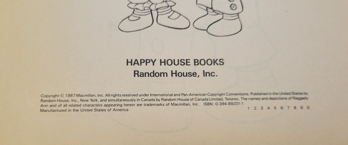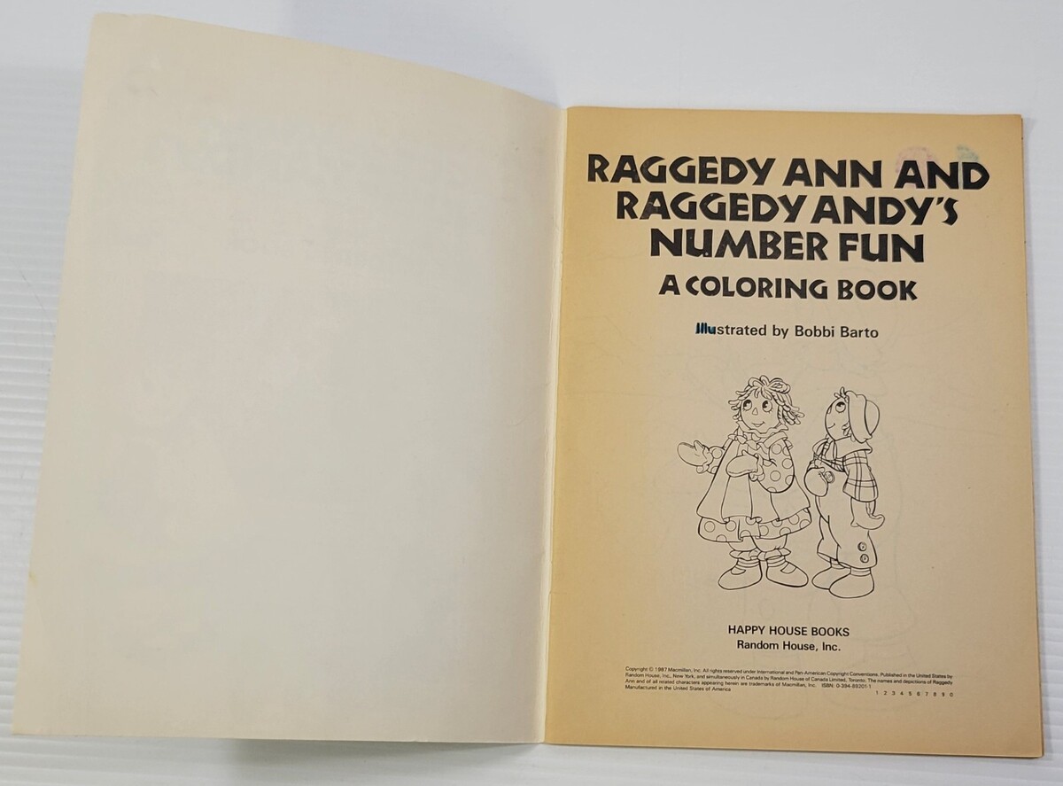 *L3) Vintage 1987 Raggedy Ann and Andy's Number Fun Coloring Book (Happy House)