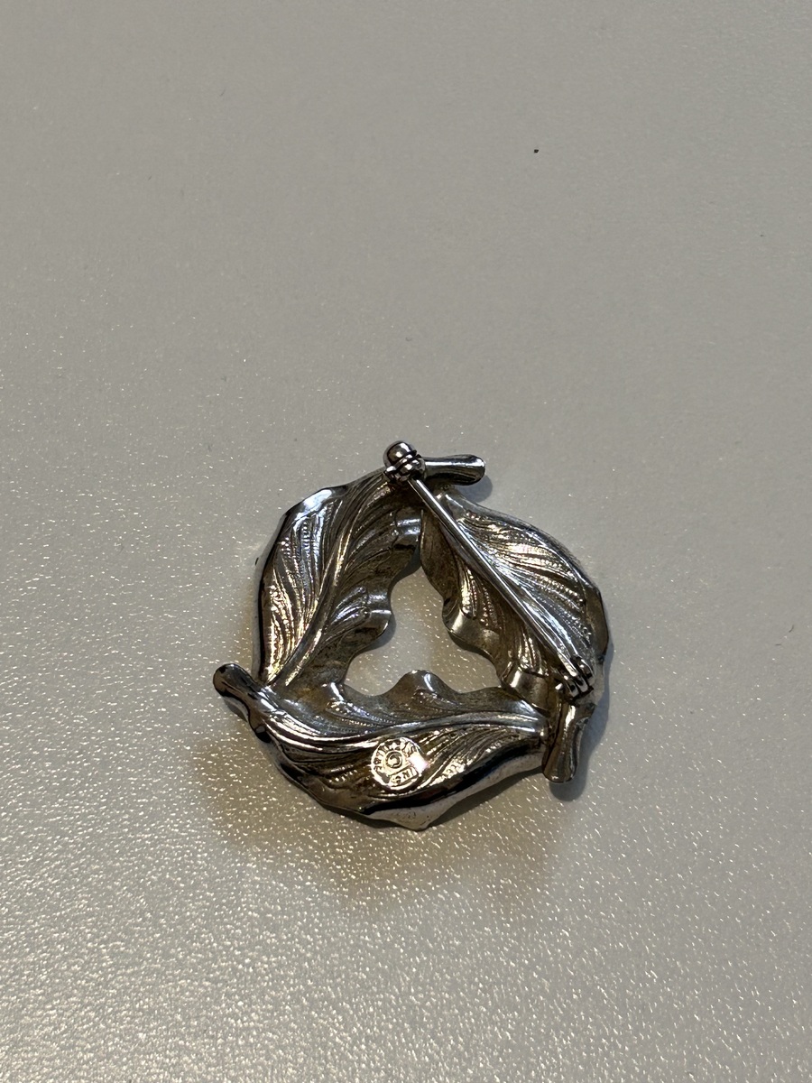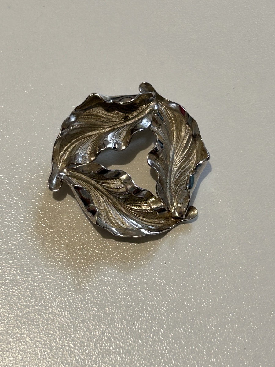 This beautiful brooch is crafted from high-quality sterling silver and features stunning leaf circle connect design. The intricate details of the leaves make this piece a true work of art. Perfect for adding elegance and sophistication to any outfit, this brooch is sure to turn heads.