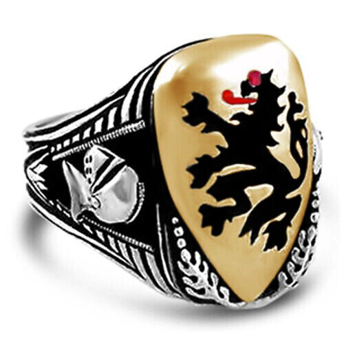 Tudor lion Bronze Shield sterling silver ring