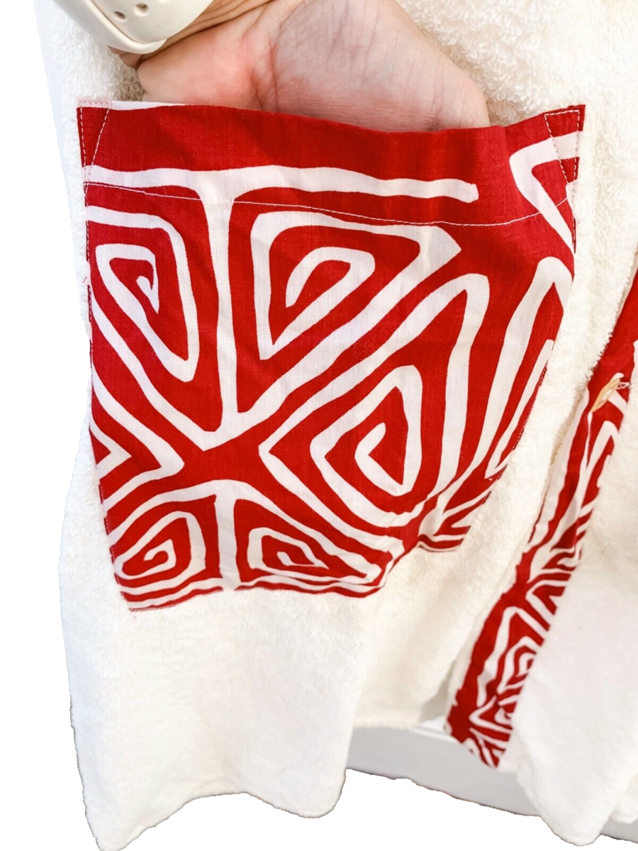 Sustainability Note: Sustainably vintage ? 1960s terry robe with hand-crafted mola applique, not fast fashion.