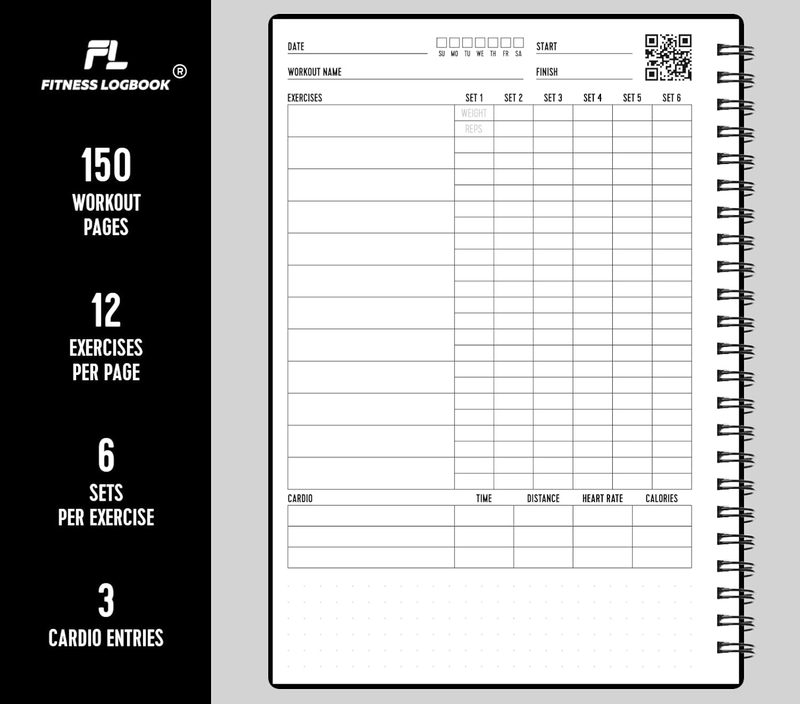 THOUGHTFUL LAYOUT. Simple, clean, and time-tested. Plenty of space to record exercises, weights, reps, cardio and notes. Before purchasing, we recommend you download the "Standard Template" PDF file from our website and print it to make sure the layout suits you.