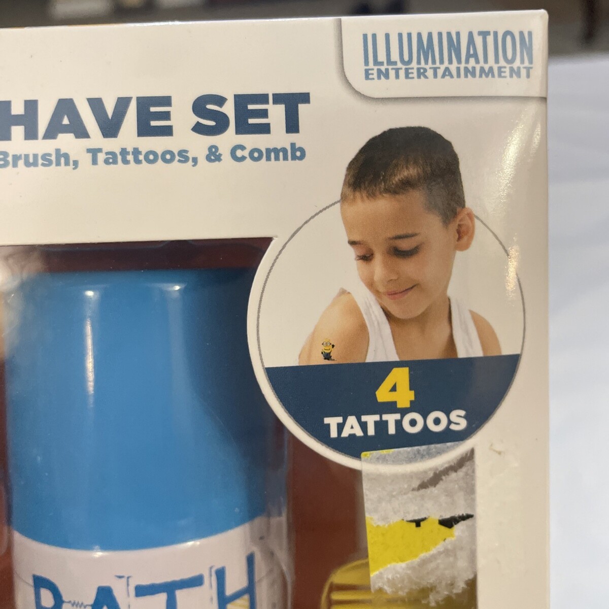 The Illumination Minions Bath Time Play Shave Set is a fun and colorful bath toy inspired by the popular Minions franchise. This set includes items like bath foam, a toy razor, shave brush, comb, and temporary tattoos, allowing kids to engage in imaginative play during bath time. Made of plastic, this bath toy set is themed around cartoons and TV characters, making it a perfect addition to any young fan's collection. The original packaging adds to the appeal of this entertaining and playful toy set.