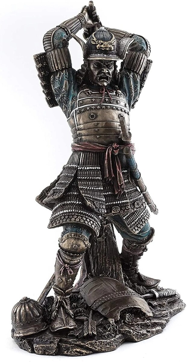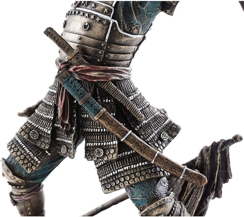 Samurai Warrior in Battle Japanese Bronze Resin Statue Figurine