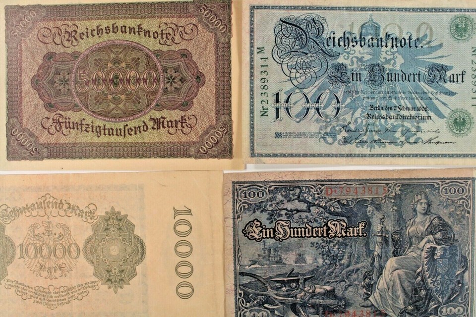 1908-1922 Germany 4-Notes Set / (2) Empire 100 Mark // Weimar 10000 50000 Mark