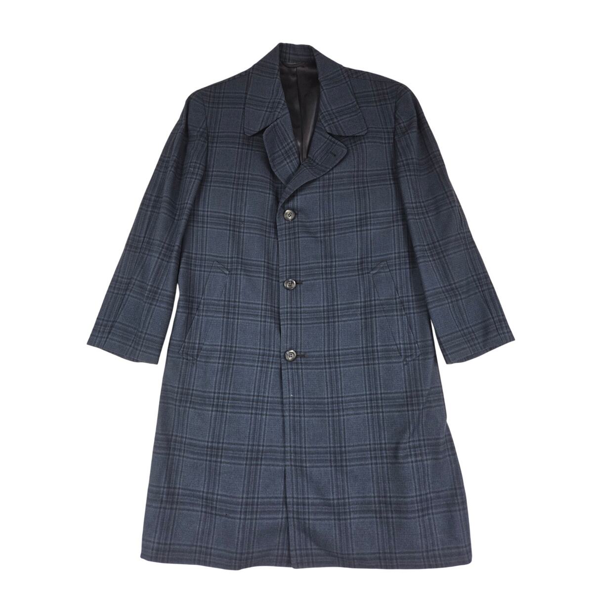 VTG 70s Troisi Navy Wool Plaid Men’s Trench Coat Single Breasted L/XL