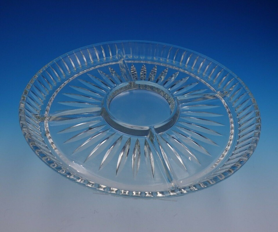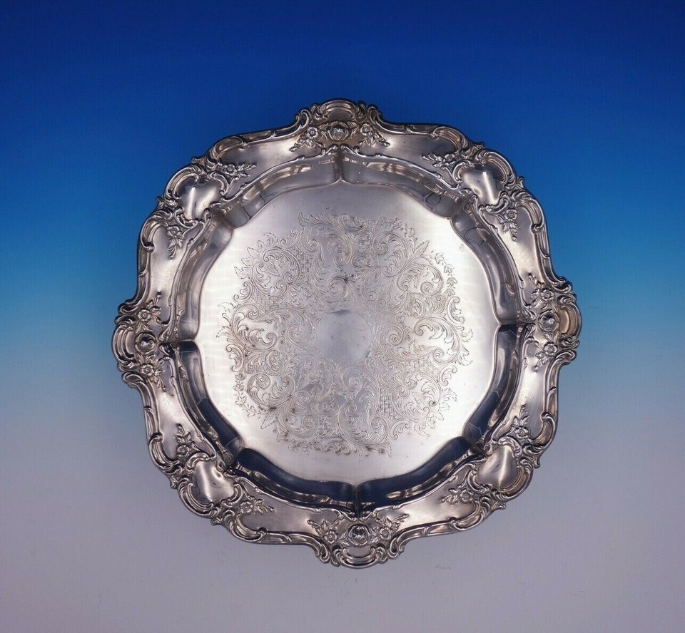 Exceptional Old Master by Towle silverplate relish tray with glass liner marked #4023. This piece measures 1" x 15" in diameter. It is not monogrammed and is in very good condition, with minor surface scratches as can be expected with age. Marvelous!