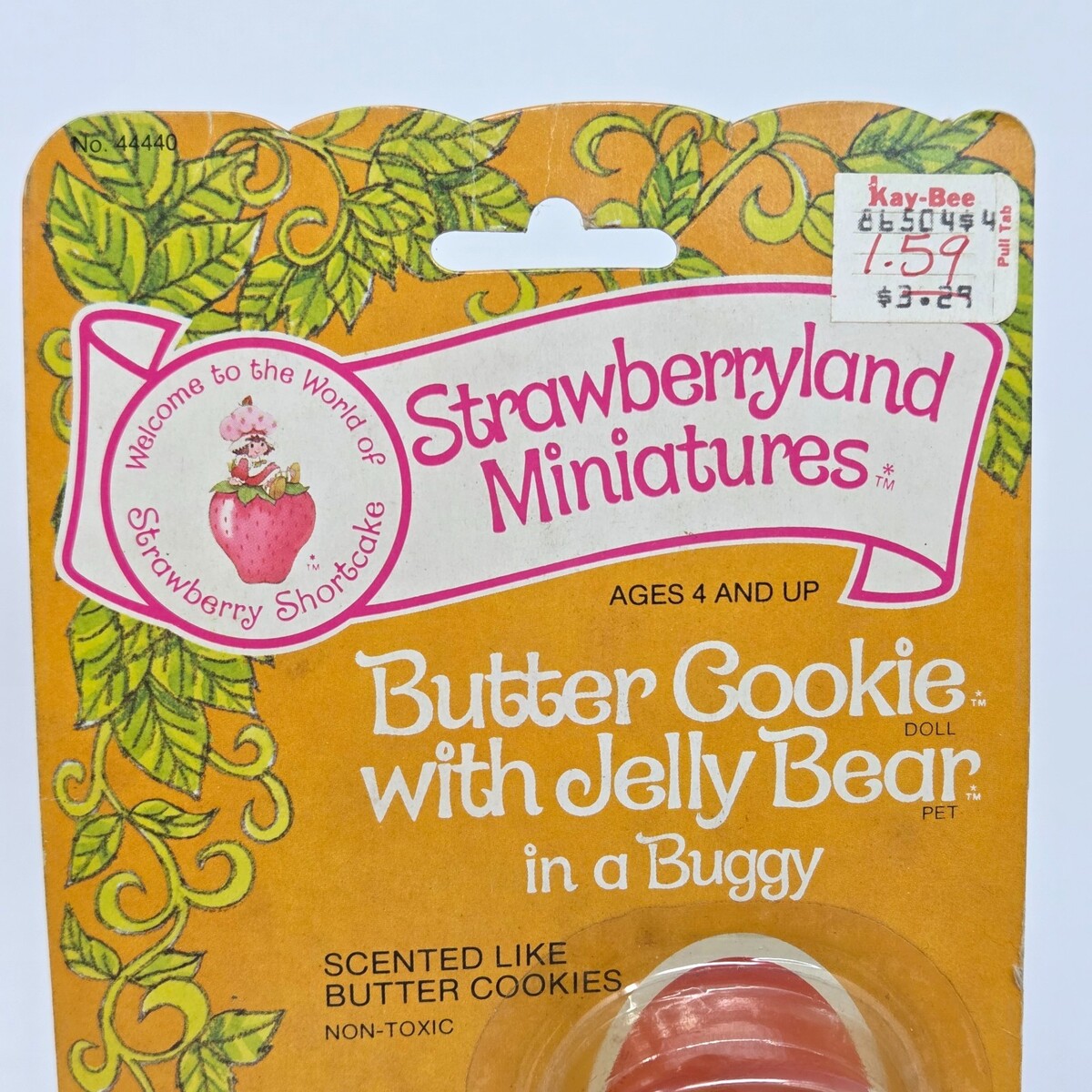 STRAWBERRYLAND MINIATURES STRAWBERRY SHORTCAKE BUTTER COOKIE JELLY BEAR IN BUGGY