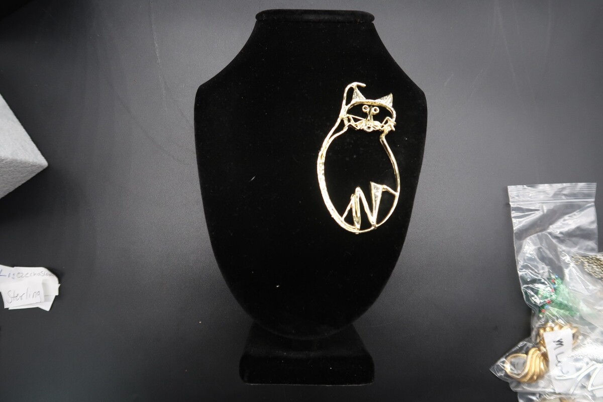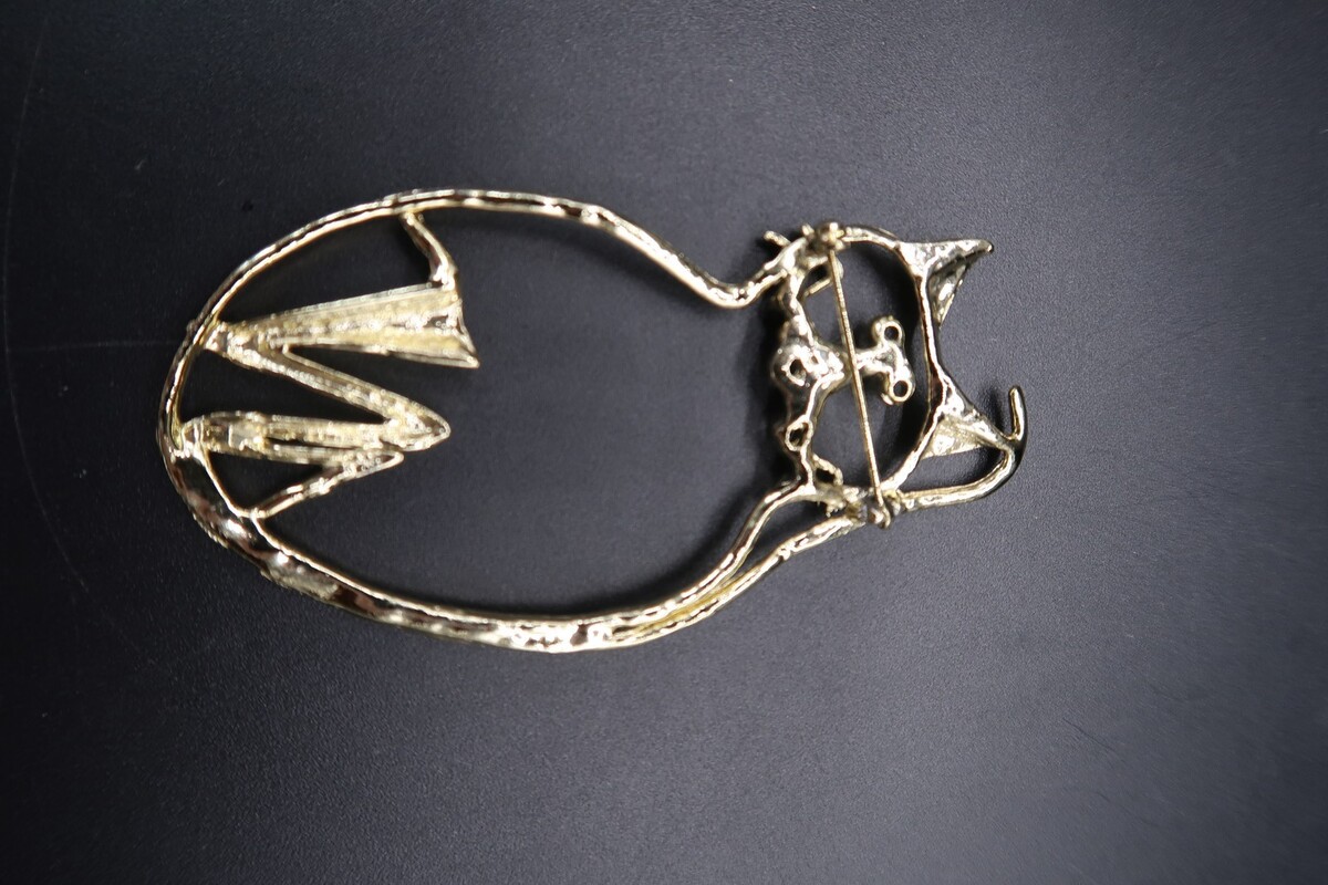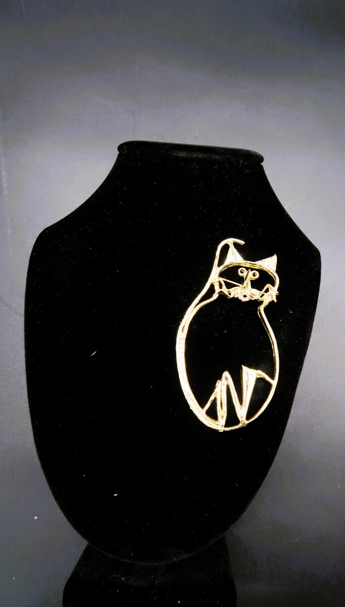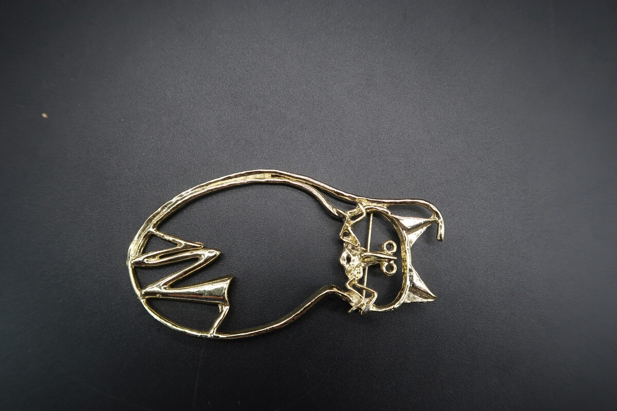Vtg Abstract Outline Cat Gold Tone Brooch and similar items