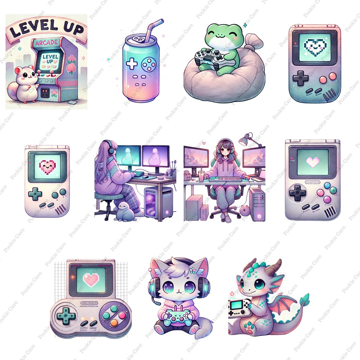 Watercolor Gamer Clipart Bundle | Cozy Gaming PNG Set (Digital Download)