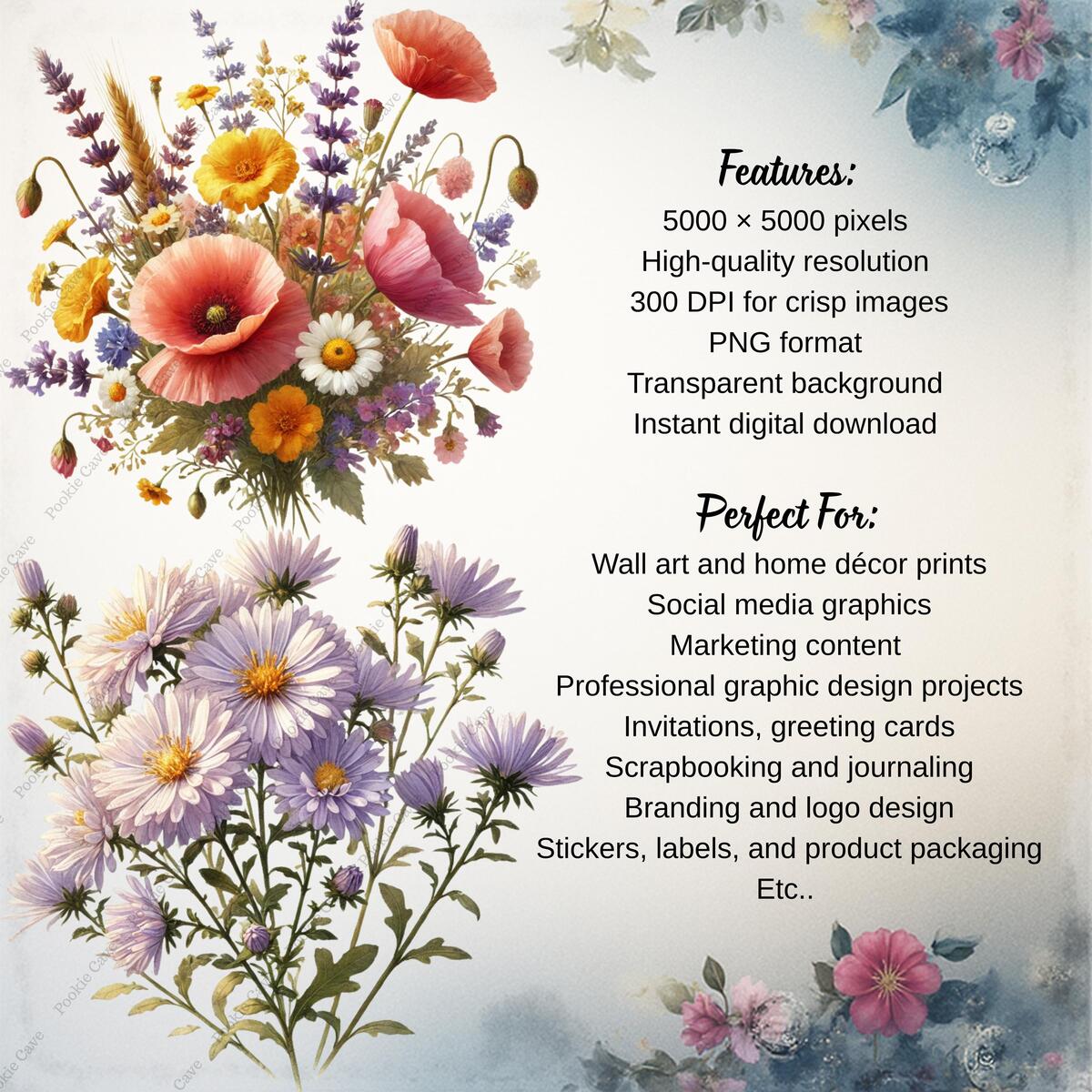 Bring the charm of a late-summer meadow to your creative projects with this premium Wildflower Meadow Clipart Bundle. Each element in watercolor style, featuring daisies, poppies, lavender springs, buttercups, and cornflowers. Perfect for wedding invitations, stationery, wall prints, stickers, digital planners, and small business branding.