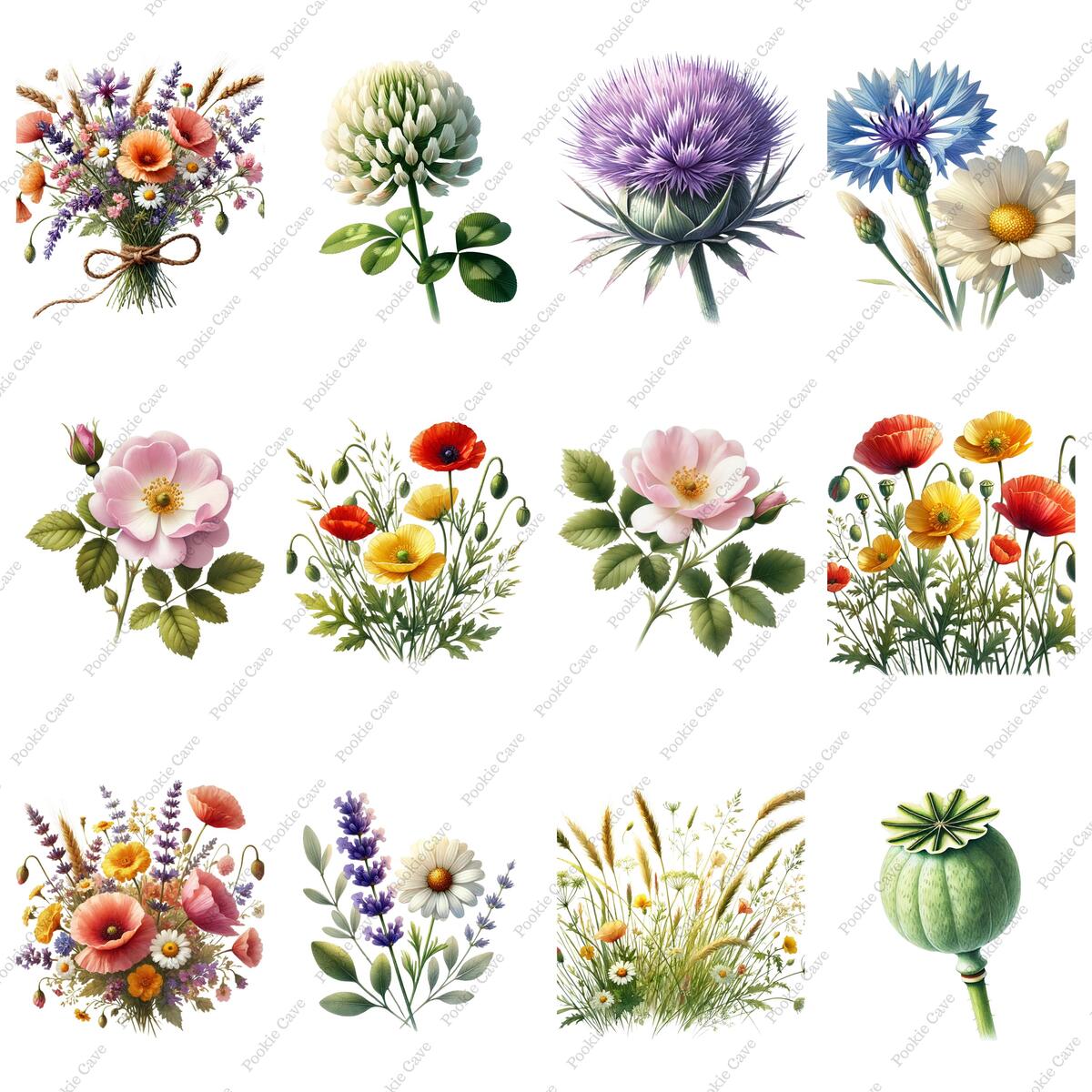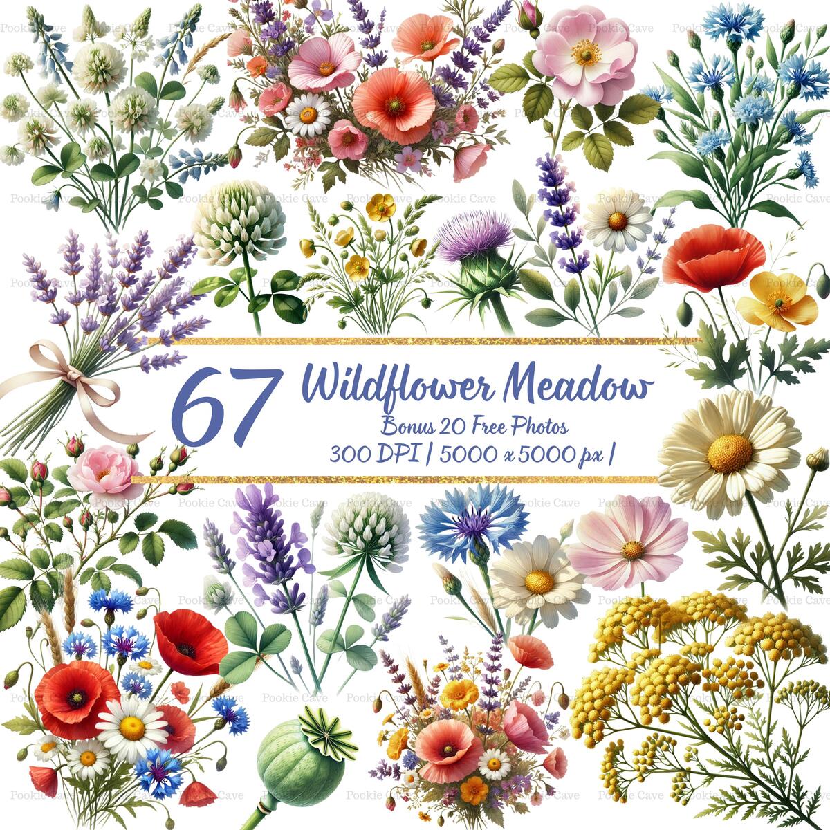 67 Watercolor Wildflower Clipart Bundle: Meadow Flowers (300 DPI PNG)