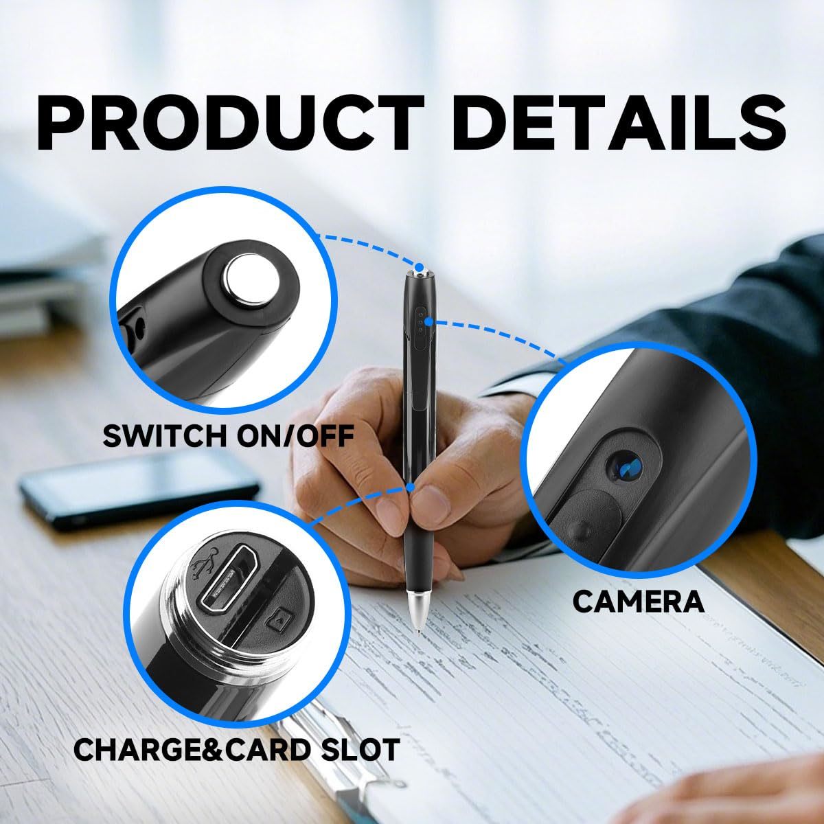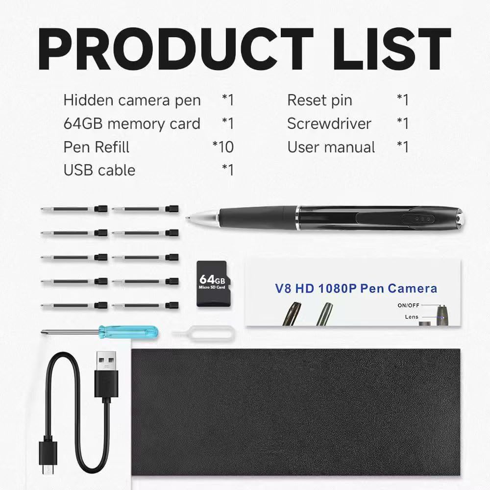 ?High Video Quality?Body mini camera pen supports 1080P FHD resolution, which can be used to record videos. It can also be used as a writing pen, replaceable pen refills*10pcs included.