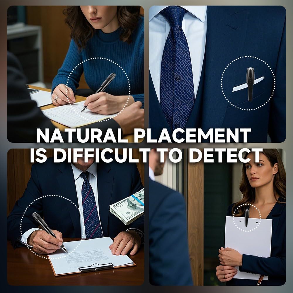 ?Easy to Use Carry?One button power on/off design is super easy to use. The smart design makes the pen is easy to clip on your pocket, belt, book or pen holder, this body camera pen can also be used as a pen to write notes.