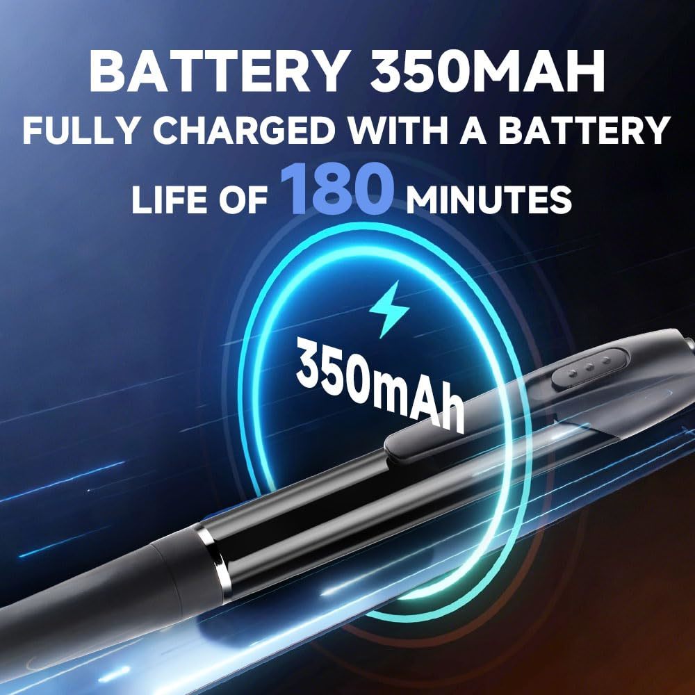 ?180 Minutes Working?Camera pen has a built-in 350mAh battery provides up to 180 minutes of working time in multiple occasions. Please fully charge the batteries before eash use of body camera pen.