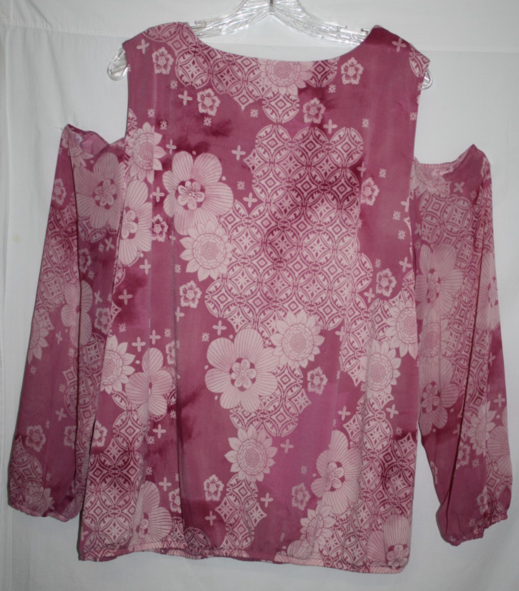 JM Collection, Woman, Size XL, Pink Floral, Blouse, Cold Shoulder, Top, Beaded Round Neckline, Light/Dark Shades of Pink, Mauve, Cream, Elastic at bottom hemline and at sleeve wrists