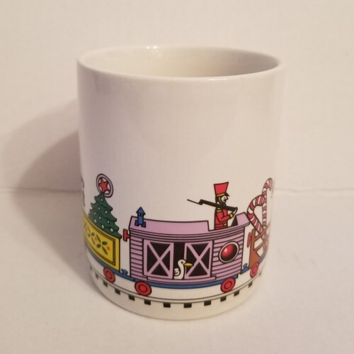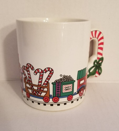 Christmas Train The Love Mug Coffee Candy Cane Handle Cocoa Tea Cup Vtg Korea