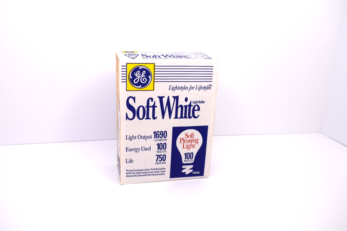 Vintage GE Soft White 100 Watt Light Bulbs 4 Pack Unused