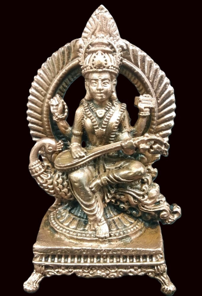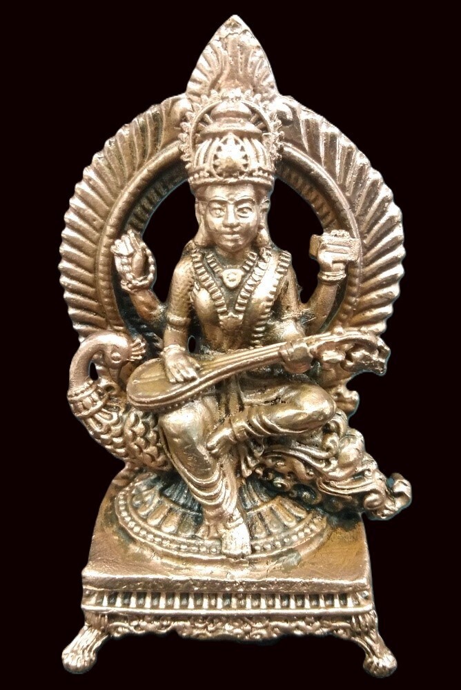 Goddess Saraswati In Pure Solid Copper
