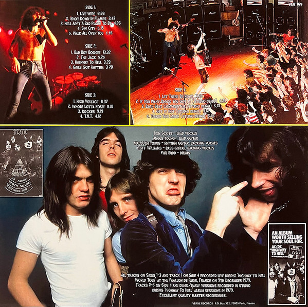 All tracks on sides, 1-3 and track 1 on side 4 recorded live during 'Highway to Hell World Tour at the Pavillon De Paris, Paris, France on December 9, 1979.