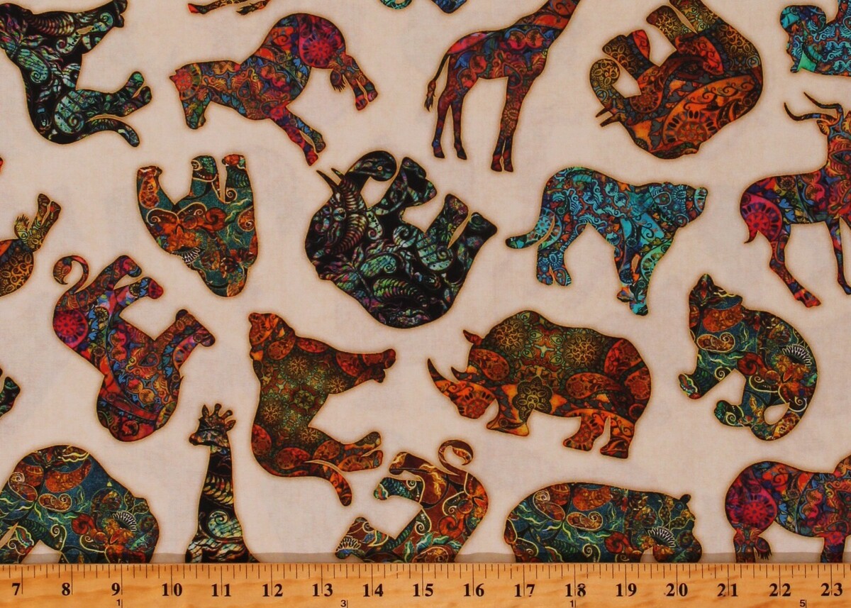 Cotton Serengeti Safari African Elephants Animals Boho Cream Cotton Fabric Print by the Yard (1649-27764-E)