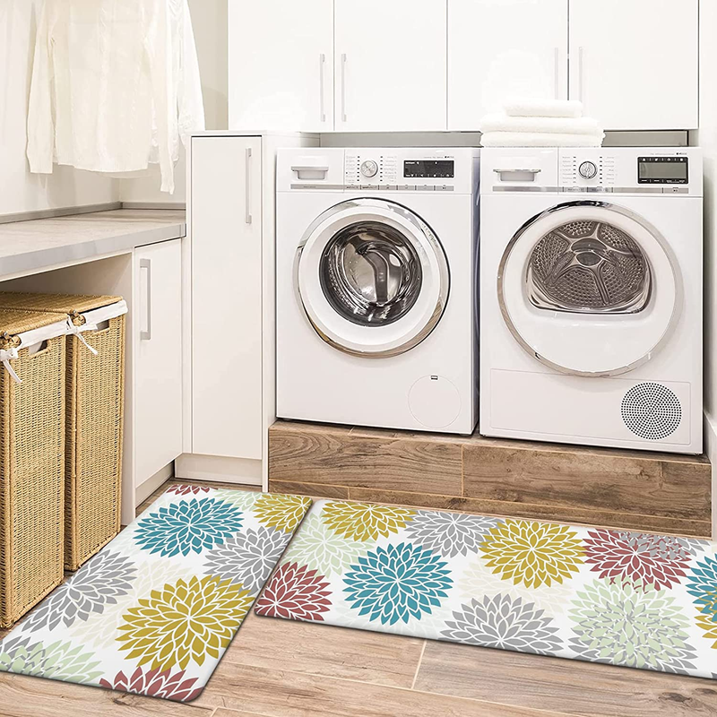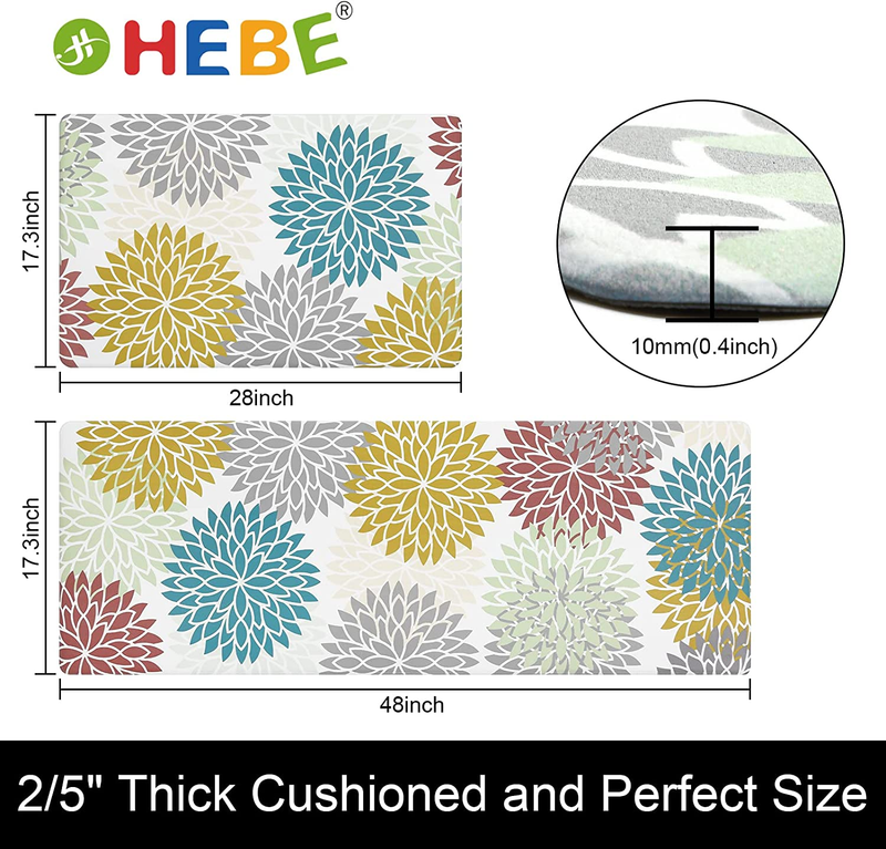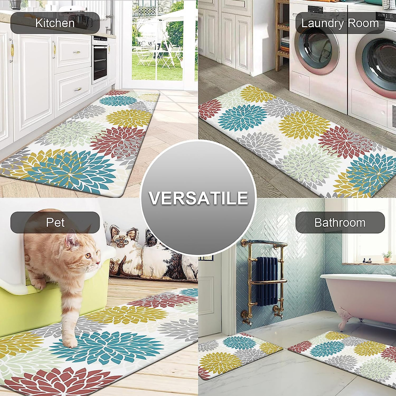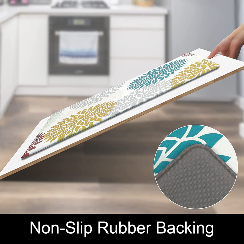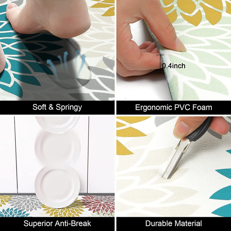 Non-Slip Safe for All Floors: Featuring a non-slip backing and beveled edges, these floral antifatigue kitchen rugs and mats stay firmly in place on wood, tile, marble, and more, preventing slips and trips. The beveled edges design ensure safety without curling,ensuring a safer kitchen environment