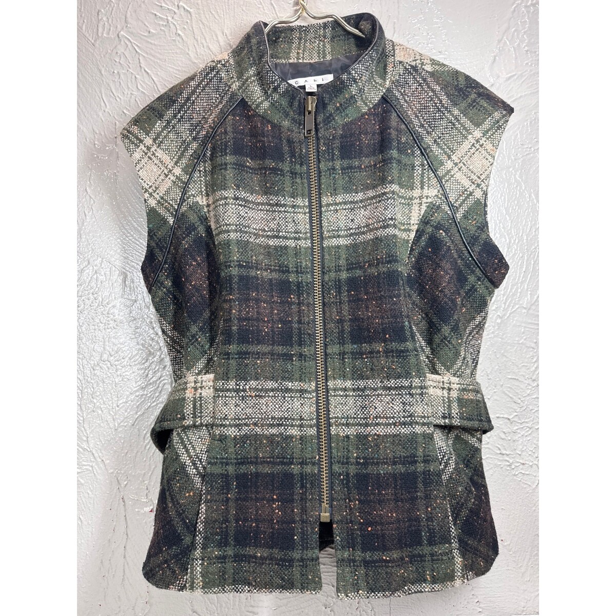CAbi Womens Style 611 All Tied Up Vest Plaid Wool Blend Tweed Zip Front Sz Large