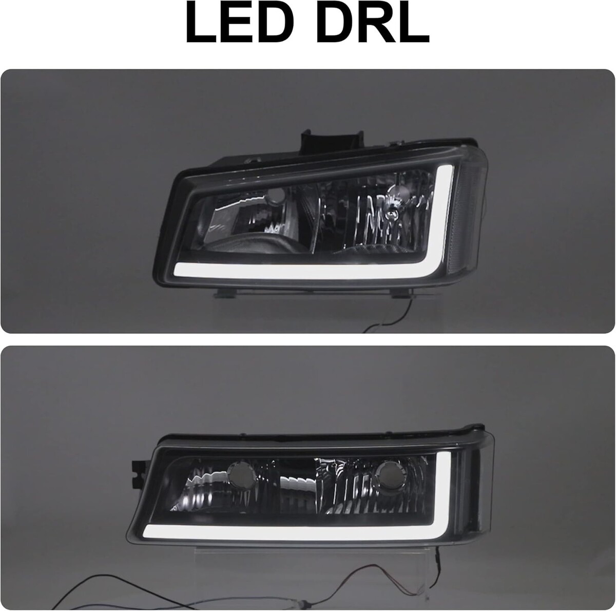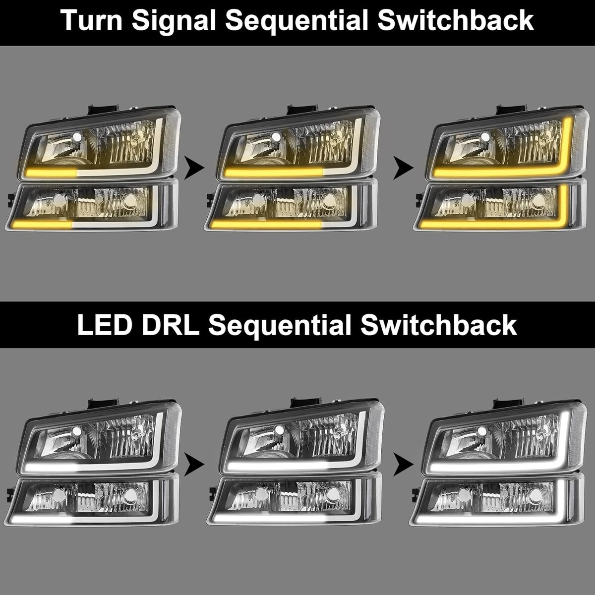Headlight LED DRL Sequential Turn Signal For 2003-2007 Chevy Silverado Avalanche