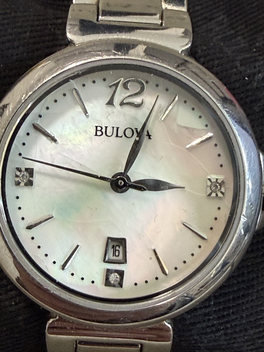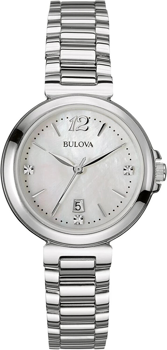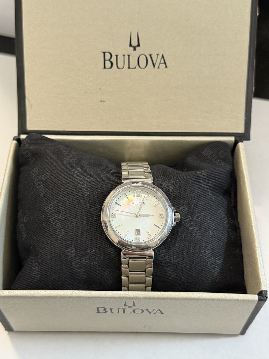 Bulova 96P149 Silver Tone Diamond White Mother of Pearl Dial Women's Dress Watch