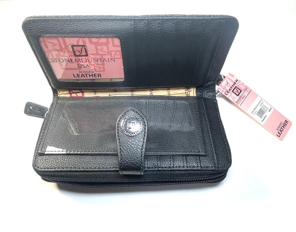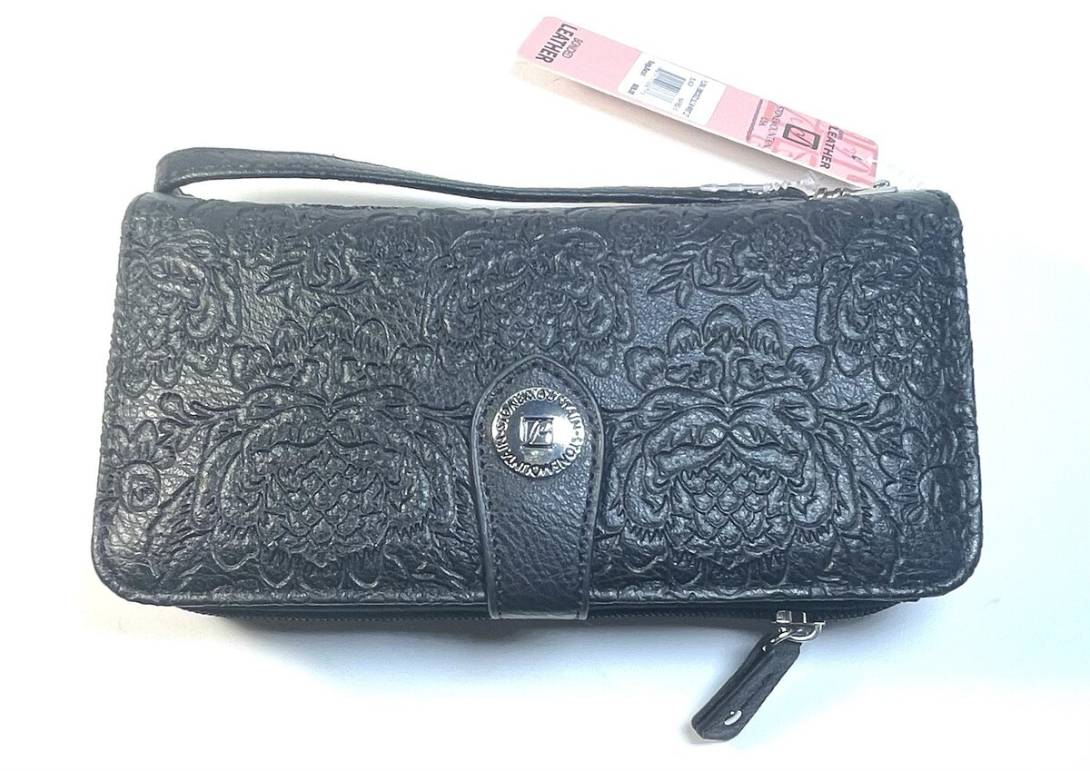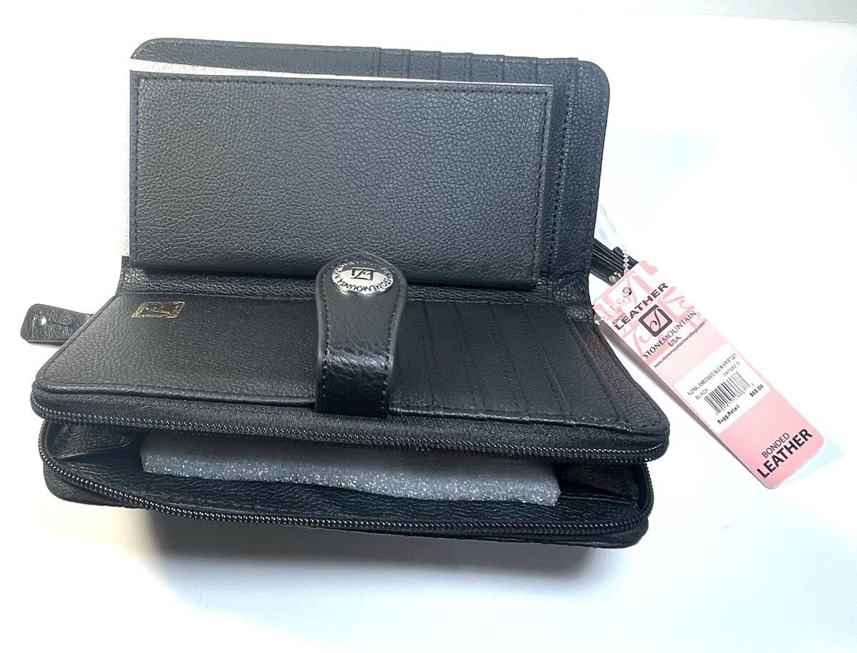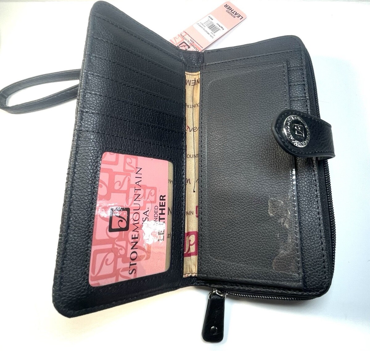 NWT $68 STONE MOUNTAIN Flower Floral Embossed Black SLG Wristlet Wallet
