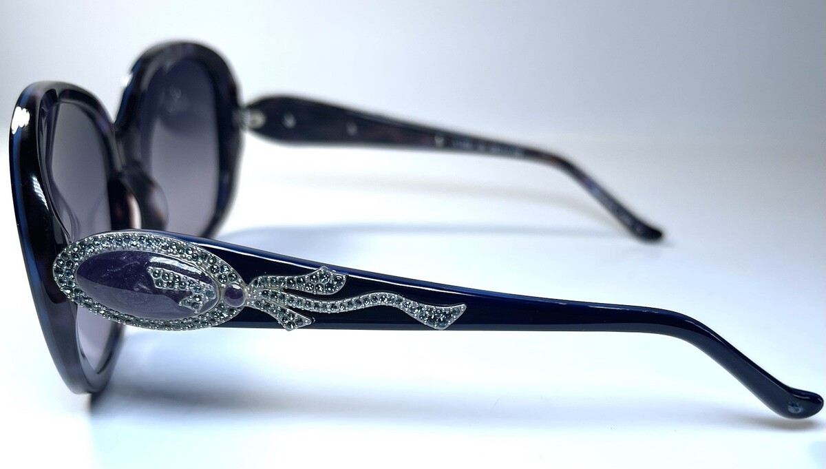 NEW JUDITH LEIBER Inscribed Rhinestone Blue Purple Sunglasses + Case JL1643