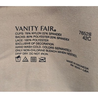 Vanity Fair 76528 Smoothing Full Coverage Bra 42C Nude Underwire Adjustable