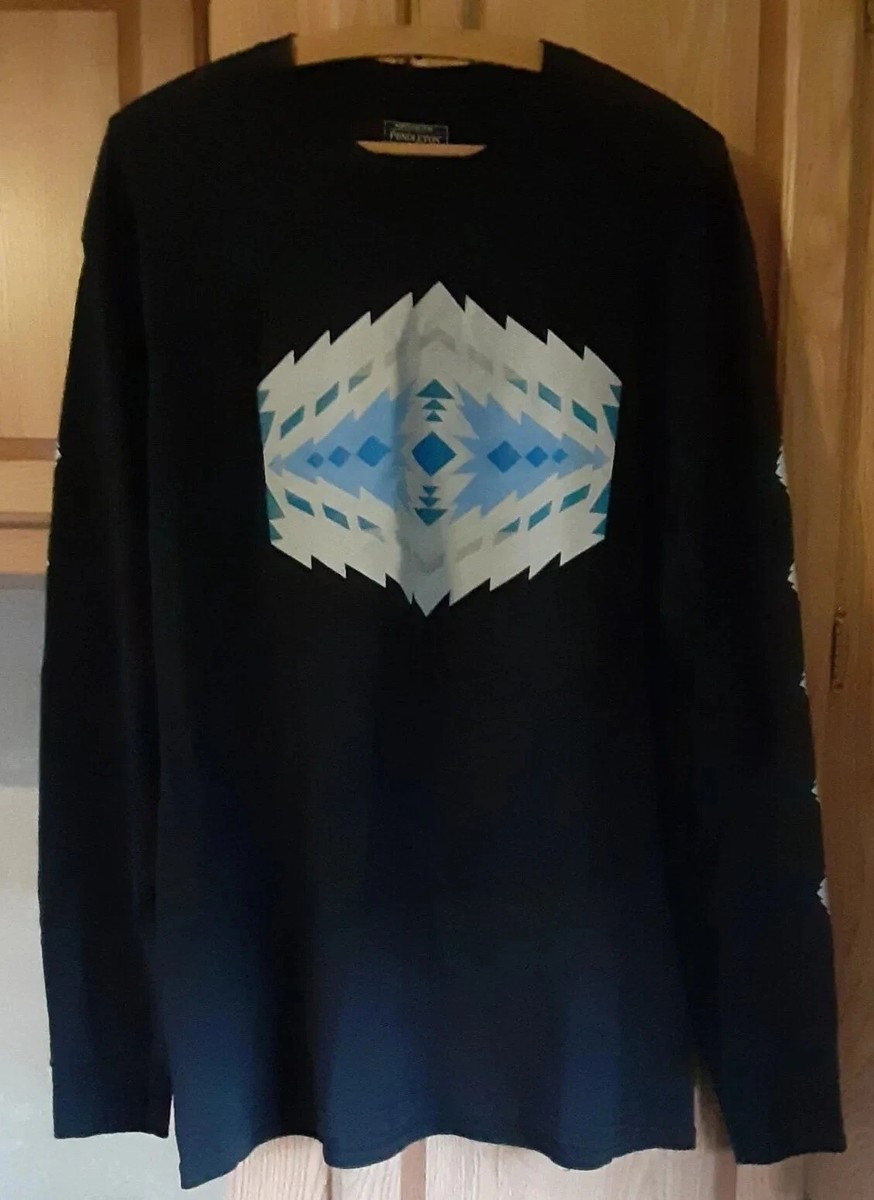 Pendleton Men's Pullover Long Sleeve T-Shirt Sz L Black Outdoorsman Aztec Print