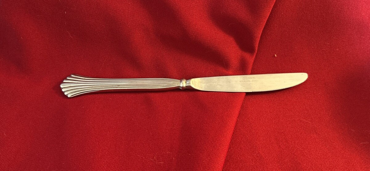 This vintage Stanley Roberts knife is a modern hollow knife made of stainless steel, measuring 9 1/8" in length. The sleek silver color and modern style make it a stylish addition to any kitchen or dining set. With its original design and high-quality materials, this knife is both functional and decorative, perfect for collectors or those looking to upgrade their flatware collection.