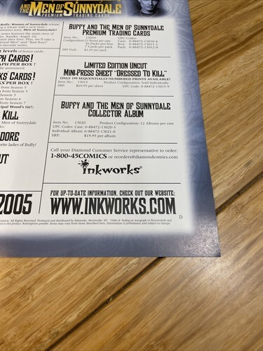 Inkworks 2005 Buffy the Vampire Slayer Trading Card Promotional Poster KG JD