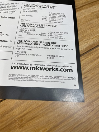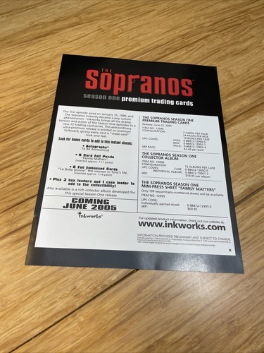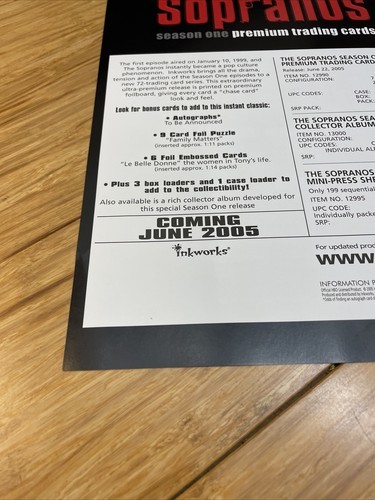 Inkworks 2005 The Sopranos Trading Card Promotional Poster KG JD
