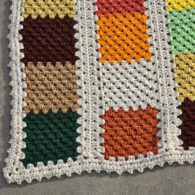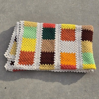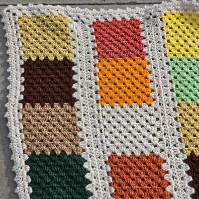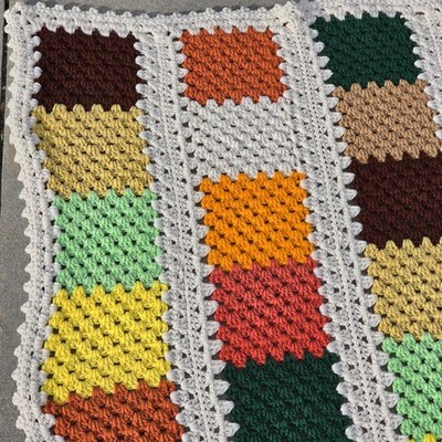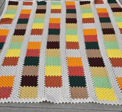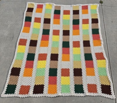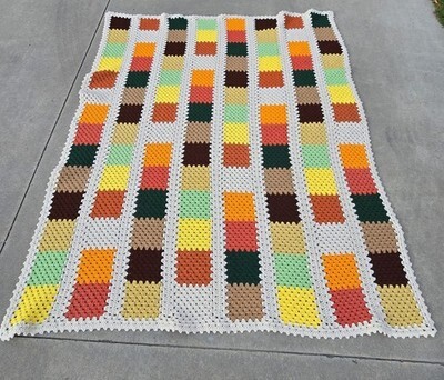 VTG Handmade Crochet Afghan Blanket 65x84 Fall Colors Cottagecore Granny Square