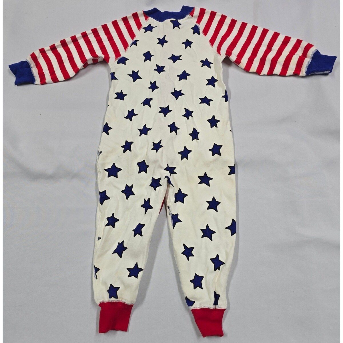 Keywords: one piece, sleepsuit, romper, patriotic, Americana, themed, cotton, long sleeve, zipper closure, baby boy, baby girl, gender neutral, pajamas, Vintage Y2K